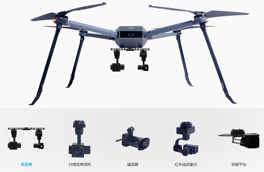 除此之外,它還具有定制化的特點,警用無人機常常搭載空中喊話、催淚瓦斯、安防監(jiān)控等裝置。通過搭載不同設備可以實現(xiàn)不同的功能,較早在實際中應用。