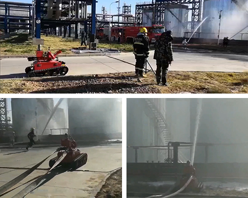 L1應(yīng)急消防機(jī)器人可以在化學(xué)品爆炸、高溫、大火等場(chǎng)景下充當(dāng)消防員在一線(xiàn)運(yùn)作。它支持5200N牽引力,可拖動(dòng)兩條100m長(zhǎng)充滿(mǎn)水的φ80水帶行走,通過(guò)水帶進(jìn)行長(zhǎng)時(shí)間滅火。它的自然風(fēng)冷系統(tǒng)還能自我降溫,在遇到高溫大火的場(chǎng)景,能夠一邊自我保護(hù),一邊滅火,也能跟消防員一同執(zhí)行緊急滅火的工作。
