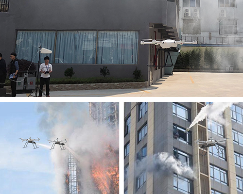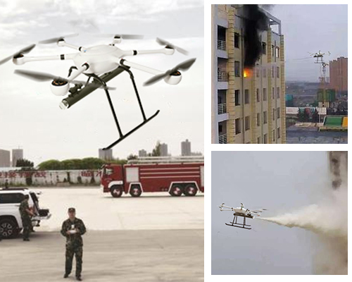 國(guó)內(nèi)外高層建筑火災(zāi)多有發(fā)生,即使有充足精良的消防器材裝備,比如消防車(chē)云梯,也因?yàn)楦叨认拗疲鴽](méi)有及時(shí)控制火災(zāi)進(jìn)而難以撲滅,最終造成生命和財(cái)產(chǎn)的損失。通過(guò)T60無(wú)人機(jī)搭載泡沫滅火系統(tǒng)和高清攝像機(jī),利用其飛控系統(tǒng)的優(yōu)勢(shì),在1分鐘時(shí)間內(nèi),可以攜帶泡沫滅火掛載飛行至60-100米的高樓上,利用ABC干粉滅火彈滅火,達(dá)到在消防隊(duì)員抵達(dá)前的快速滅火的效果,同時(shí),通過(guò)攝像機(jī)的圖傳系統(tǒng)回傳的畫(huà)面,可以迅速觀(guān)察火災(zāi)情況,予以決策判斷。