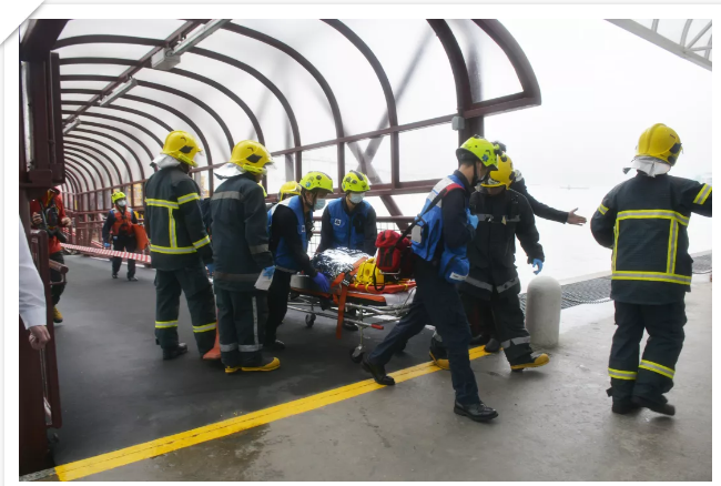 演習(xí)模擬海上兩艘游輪在海面相撞,其中一艘游輪有限度自航,游輪上船員及乘客共25人,其中有6 名乘客受輕傷,另有1 名船員于碰撞時(shí)不慎落水失蹤。另一海上游船則有船員及乘客共20人,當(dāng)中有8 名乘客受輕傷,另有2名船員于碰撞時(shí)不慎落水失蹤。