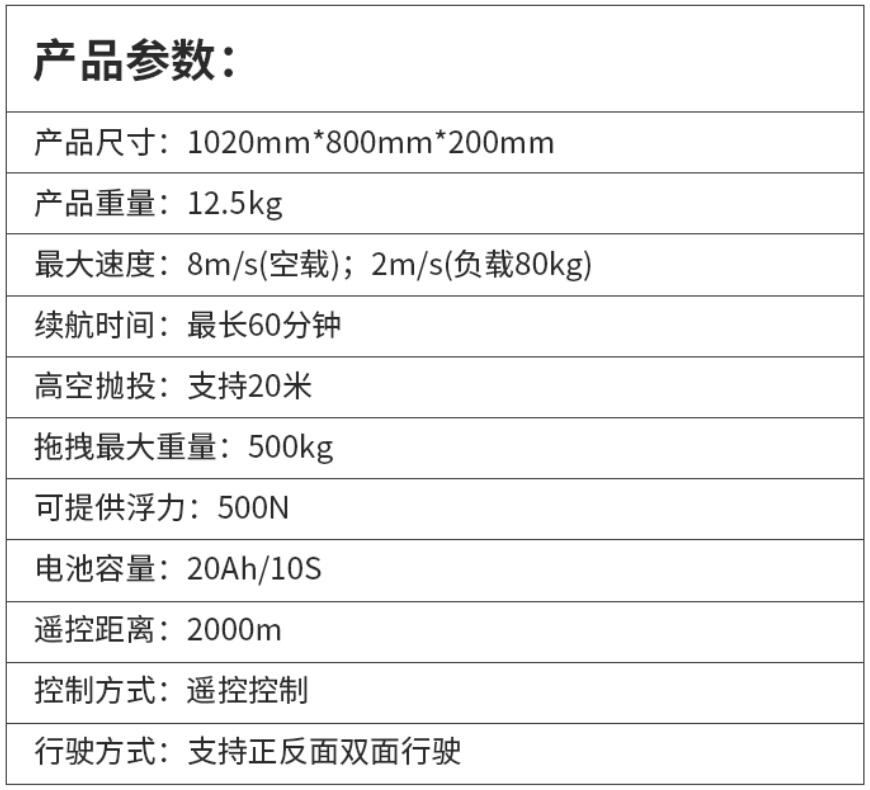 R2水上救援機(jī)器人技術(shù)參數(shù):