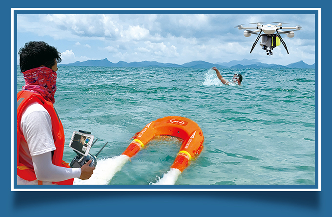 R2支持空海一體救援模式,R2能跟無(wú)人機(jī)配合實(shí)現(xiàn)空海一體救援,在緊急救援中,無(wú)人機(jī)能清晰傳回前方視頻,R2能夠按照無(wú)人機(jī)飛行軌跡跟隨航行,實(shí)現(xiàn)遠(yuǎn)距離救援。