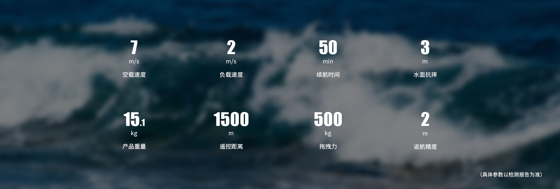 R1除了救人,還能拖拽船只,運輸救援物資等,載重可達500KG,小小身體,帶來更多可能性。