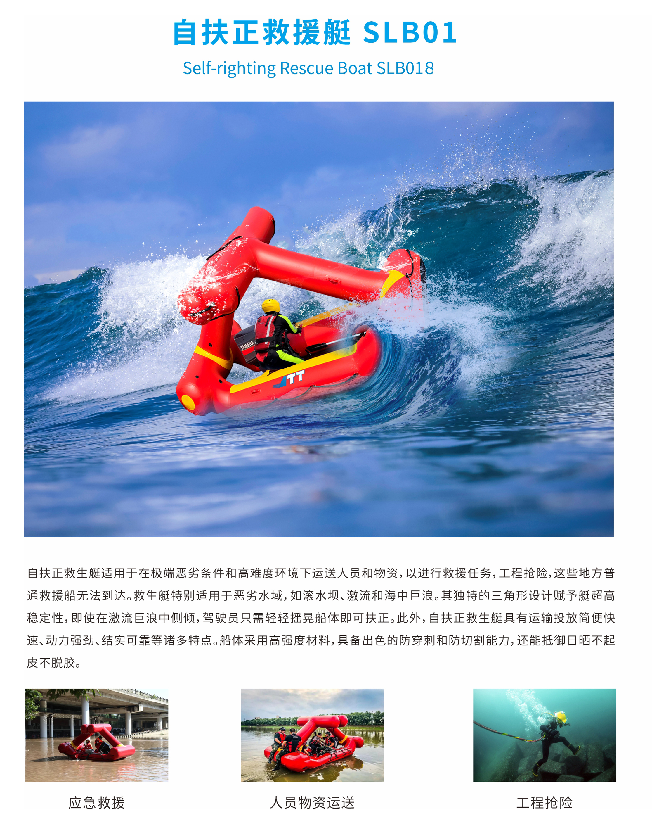 浮筒前段兩側配置多功能救生浮球及快速調整固定帶。
