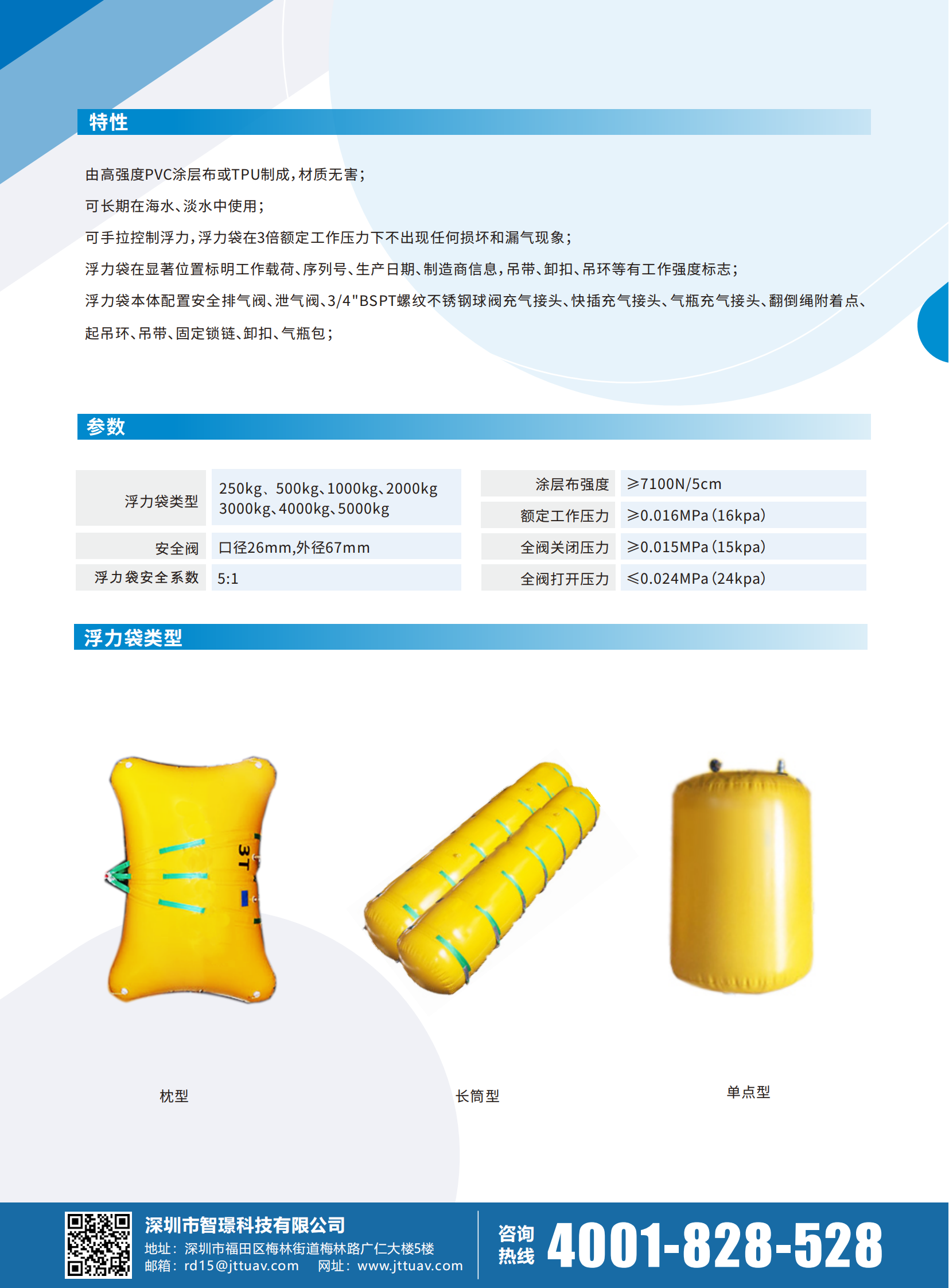 總浮力10000kg工作環(huán)境:可用于海水、淡水,浮力袋配有過壓防爆安全閥