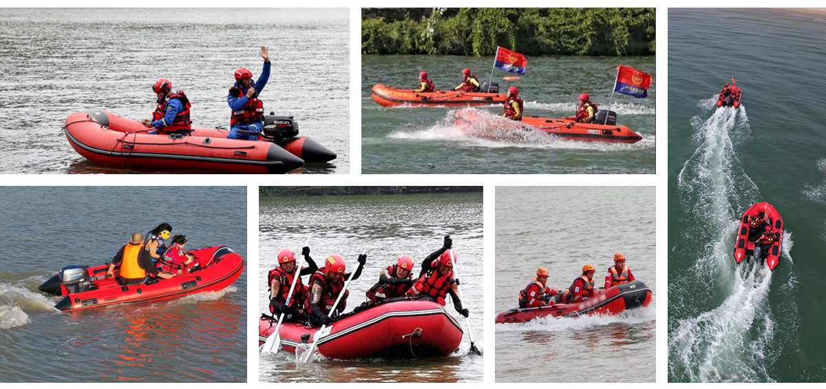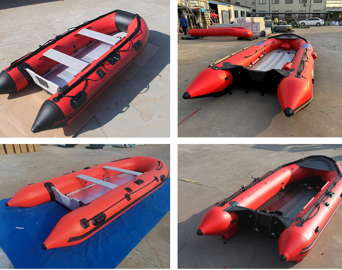 型號:ZJ015 尺寸:3800mm*1770mm±30mm 氣室:3個 船體質量:80kg 可載人數:8人 承載貨物:800kg 尾部設置舷外機固定 架底板材質:防滑鋁合金材質,并由鋁合金縱梁加固 船底深V型設計,水阻小